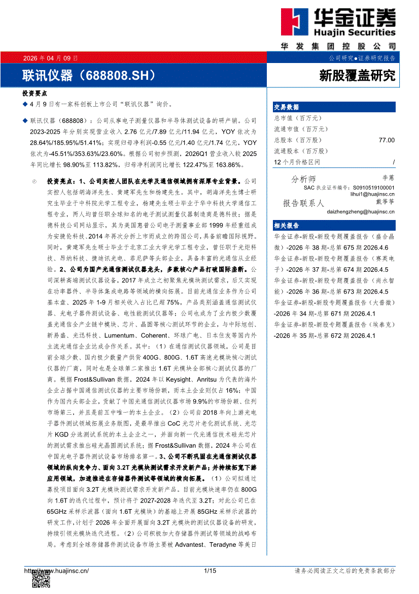 聯(lián)訊儀器:華金證券-聯(lián)訊儀器-688808-新股覆蓋研究-260409