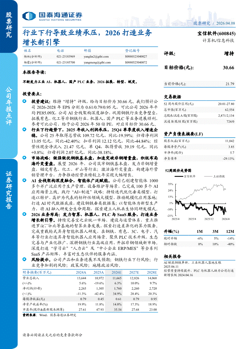 寶信軟件:國(guó)泰海通證券-寶信軟件-600845-行業(yè)下行導(dǎo)致業(yè)績(jī)承壓,2026打造業(yè)務(wù)增長(zhǎng)新引擎-260408