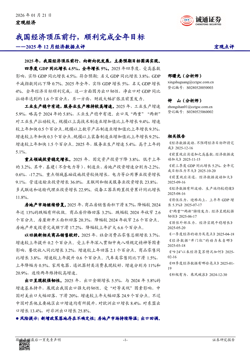 誠(chéng)通證券-2025年12月經(jīng)濟(jì)數(shù)據(jù)點(diǎn)評(píng):我國(guó)經(jīng)濟(jì)頂壓前行,順利完成全年目標(biāo)-260121