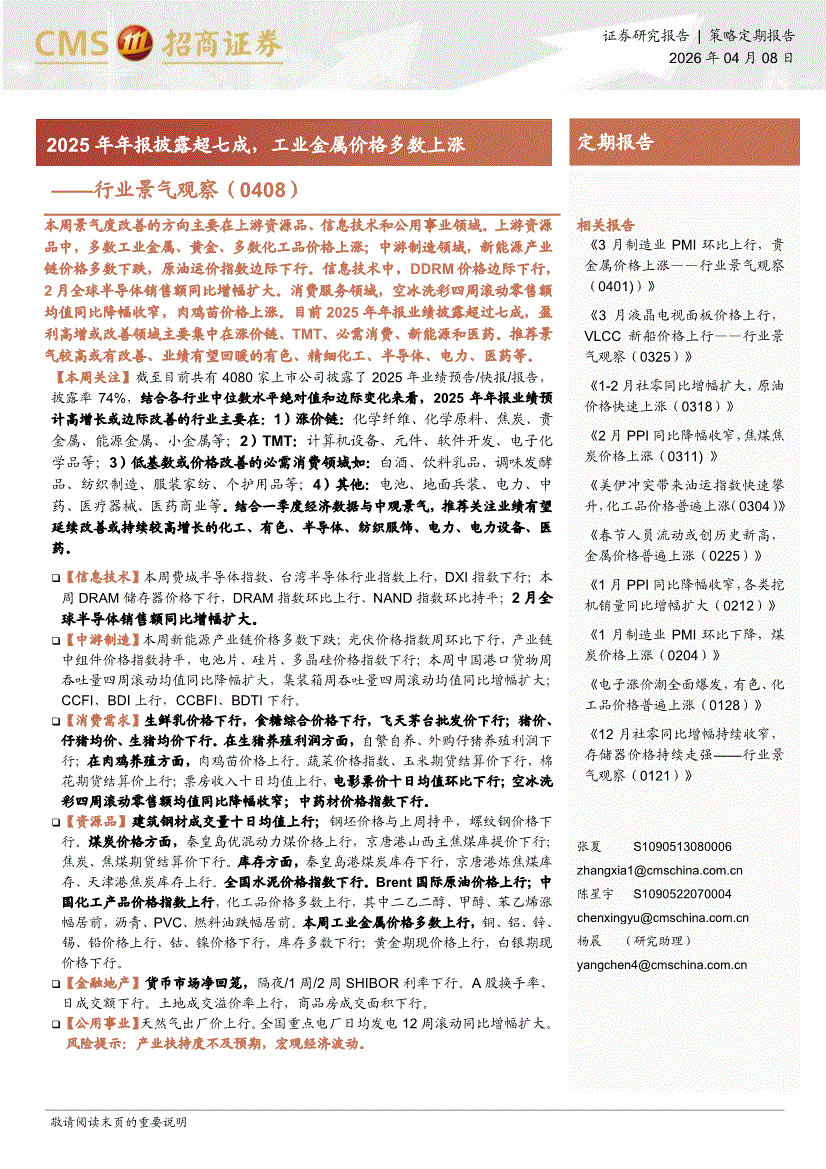 招商證券-行業(yè)景氣觀察:2025年年報披露超七成,工業(yè)金屬價格多數(shù)上漲-260408