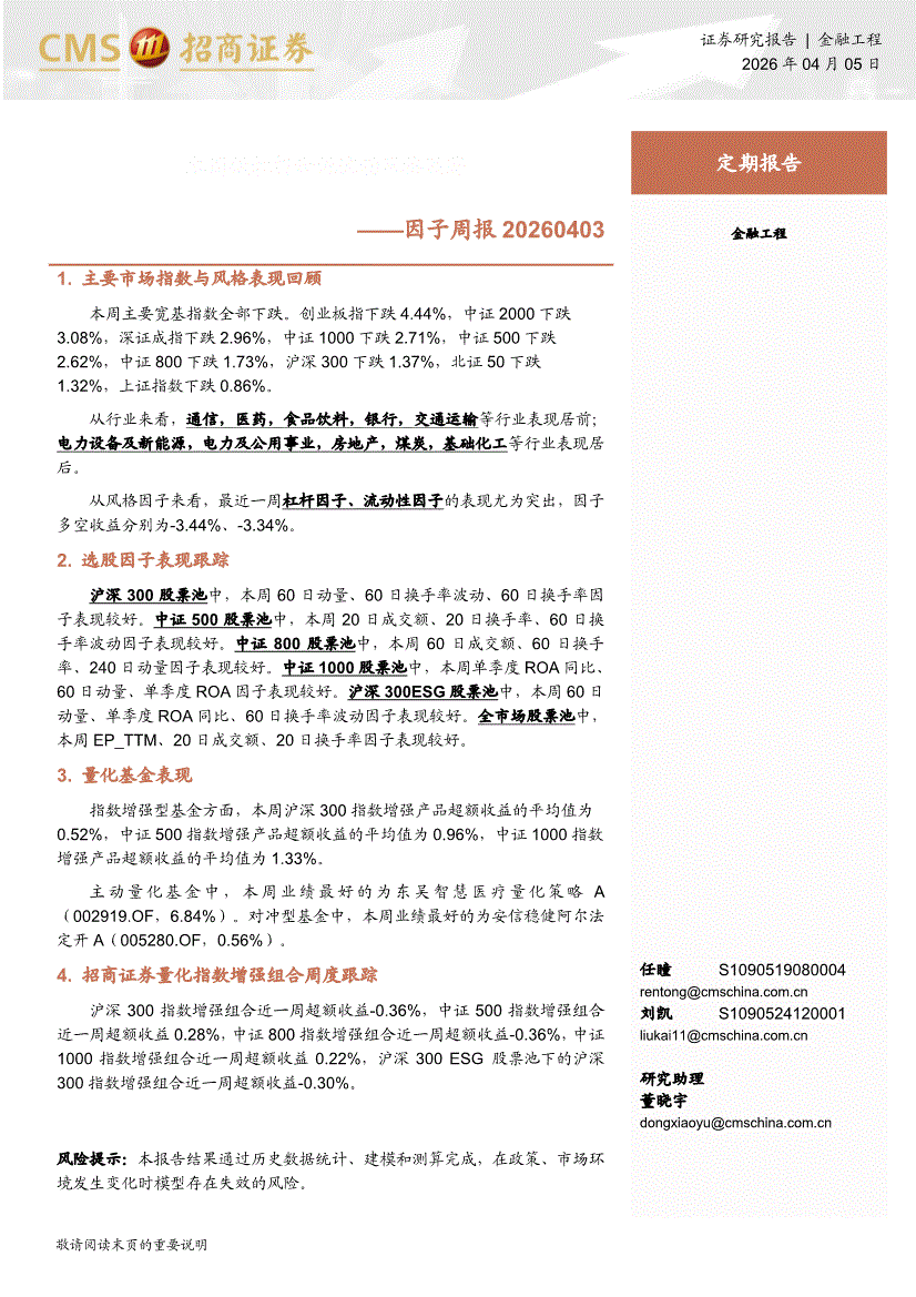 招商證券-因子周報:本周低杠桿和低流動風(fēng)格顯著-260405