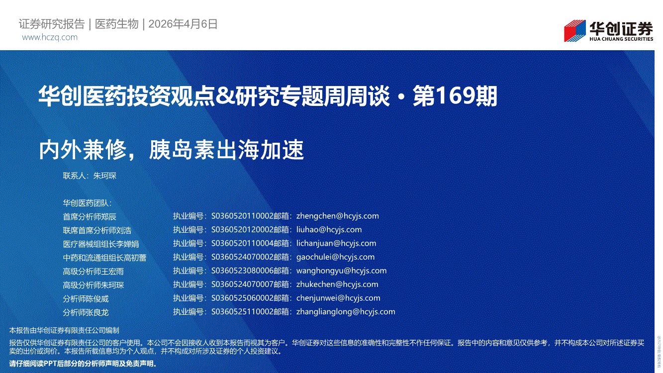 醫(yī)藥行業(yè):華創(chuàng)證券-醫(yī)藥行業(yè)投資觀點&研究專題周周談·第169期:內(nèi)外兼修,胰島素出海加速-260406