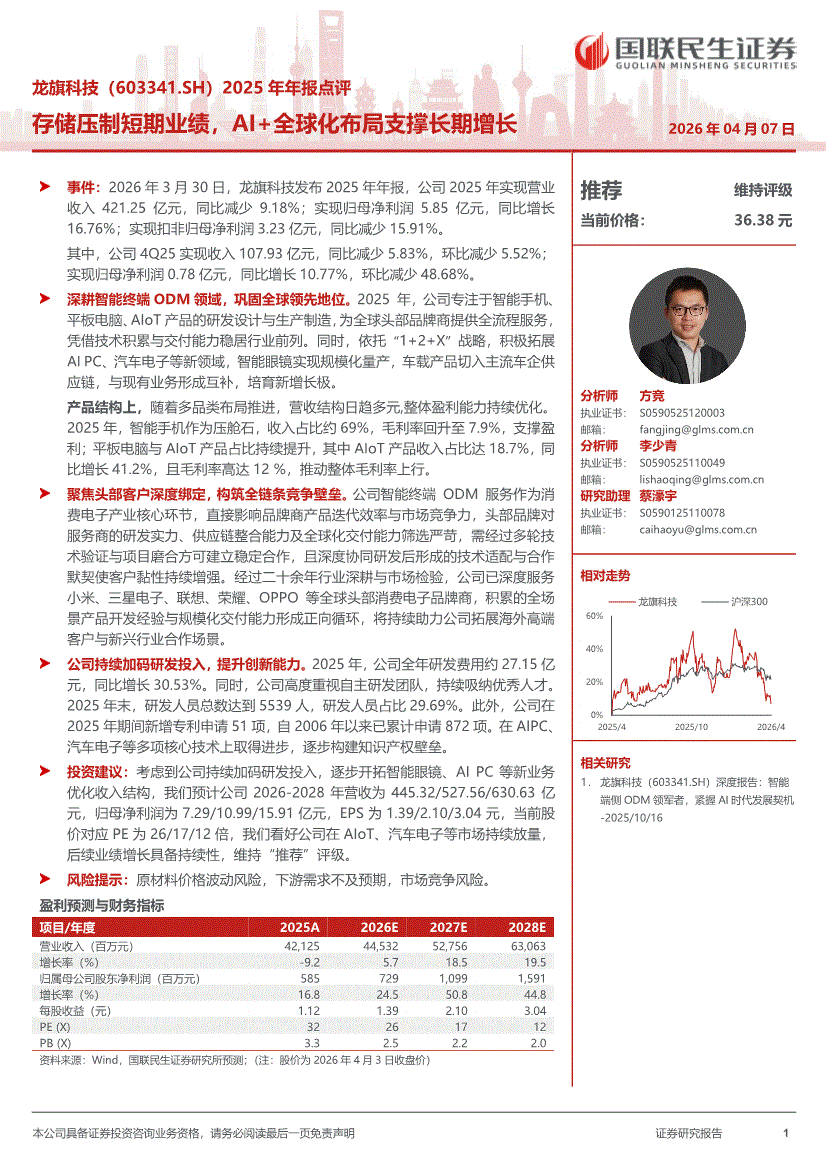 龍旗科技:國聯(lián)民生證券-龍旗科技-603341-2025年年報點評:存儲壓制短期業(yè)績,AI+全球化布局支撐長期增長-260407
