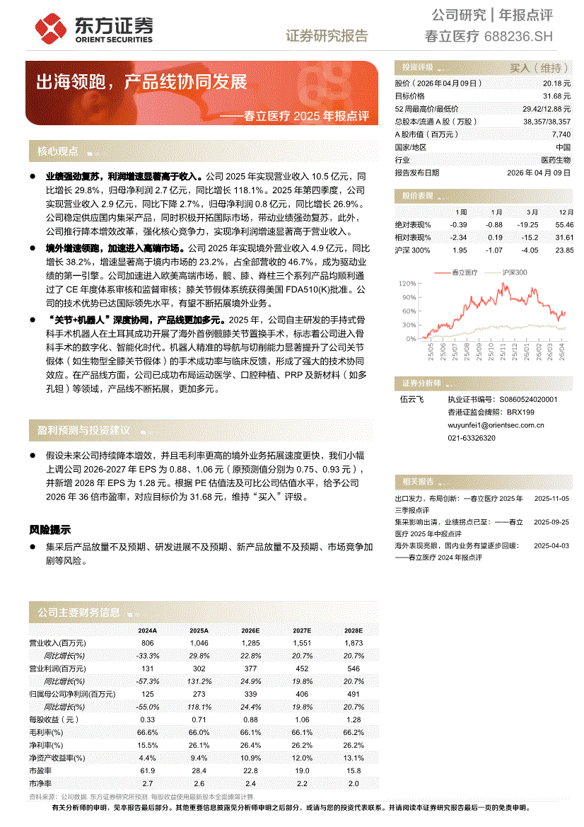 春立醫(yī)療:東方證券-春立醫(yī)療-688236-2025年報點評:出海領(lǐng)跑,產(chǎn)品線協(xié)同發(fā)展-260409
