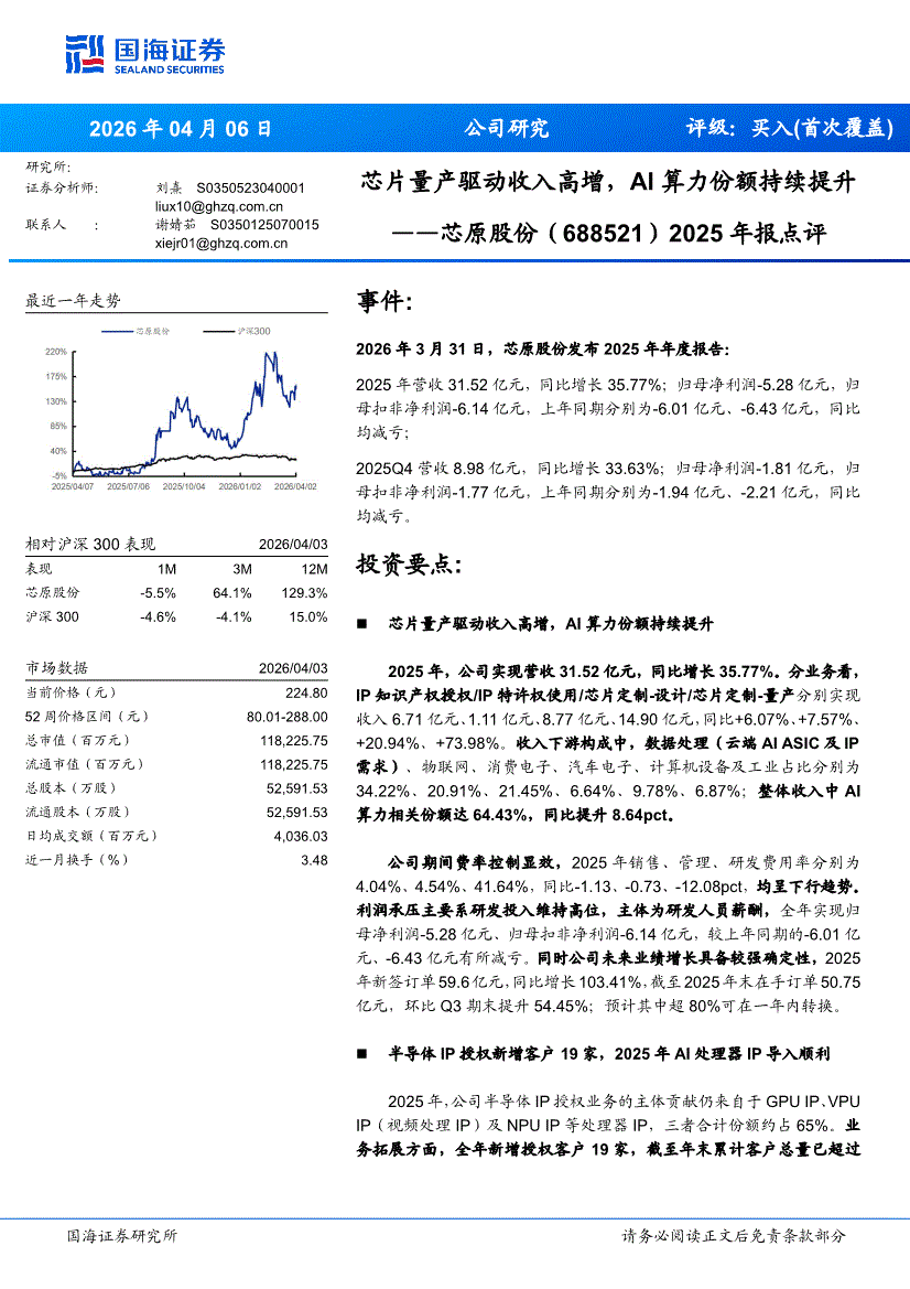 芯原股份:國(guó)海證券-芯原股份-688521-2025年報(bào)點(diǎn)評(píng):芯片量產(chǎn)驅(qū)動(dòng)收入高增,AI算力份額持續(xù)提升-260406