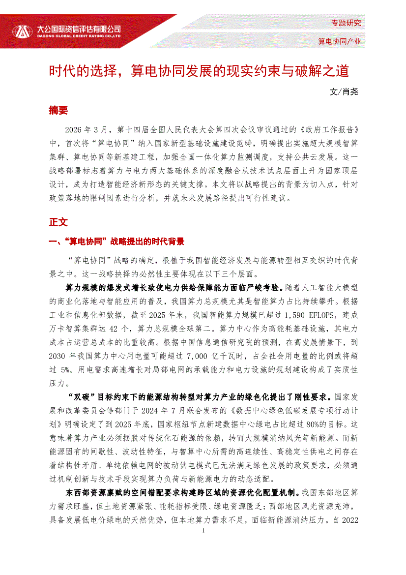 算電協(xié)同產(chǎn)業(yè)行業(yè):大公國際-算電協(xié)同產(chǎn)業(yè)行業(yè):時代的選擇,算電協(xié)同發(fā)展的現(xiàn)實約束與破解之道-260408