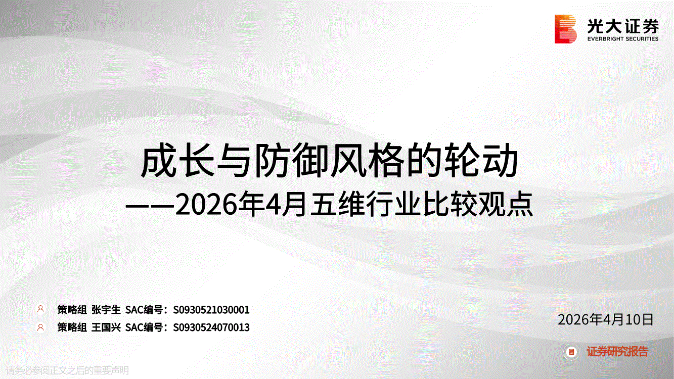 光大證券-2026年4月五維行業(yè)比較觀點:成長與防御風(fēng)格的輪動-260410