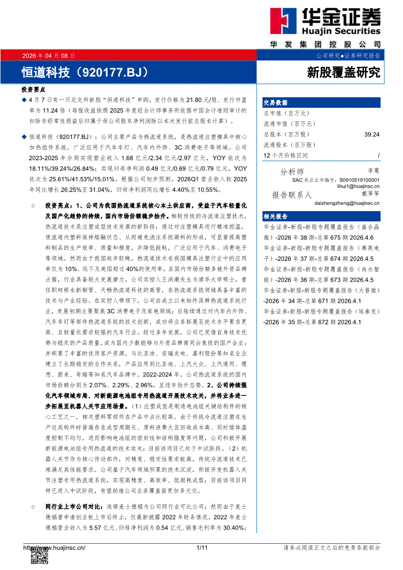 恒道科技:華金證券-恒道科技-920177-新股覆蓋研究-260408