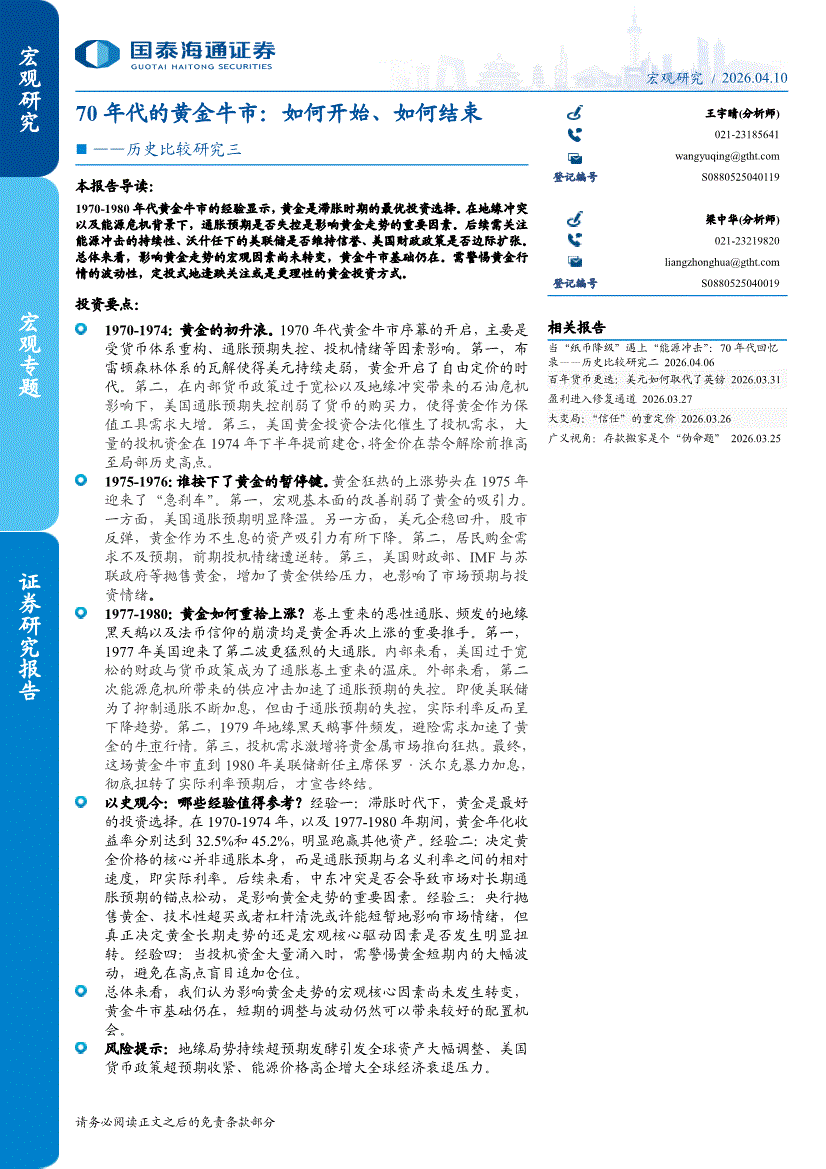 國泰海通證券-歷史比較研究三:70年代的黃金牛市,如何開始、如何結(jié)束-260410