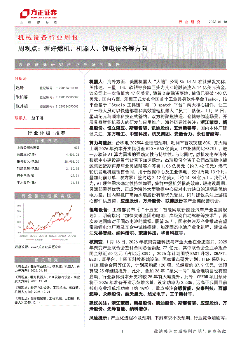 機(jī)械設(shè)備行業(yè):方正證券-機(jī)械設(shè)備行業(yè)周報(bào):周觀點(diǎn),看好燃機(jī)、機(jī)器人、鋰電設(shè)備等方向-260118