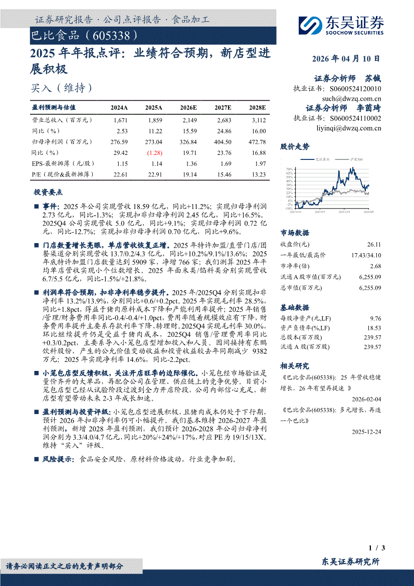 巴比食品:東吳證券-巴比食品-605338-2025年年報(bào)點(diǎn)評(píng):業(yè)績(jī)符合預(yù)期,新店型進(jìn)展積極-260410