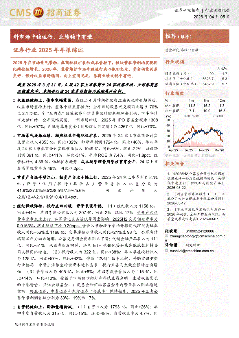 證券行業(yè):招商證券-證券行業(yè)2025年年報綜述:料市場平穩(wěn)運行,業(yè)績穩(wěn)中有進-260405