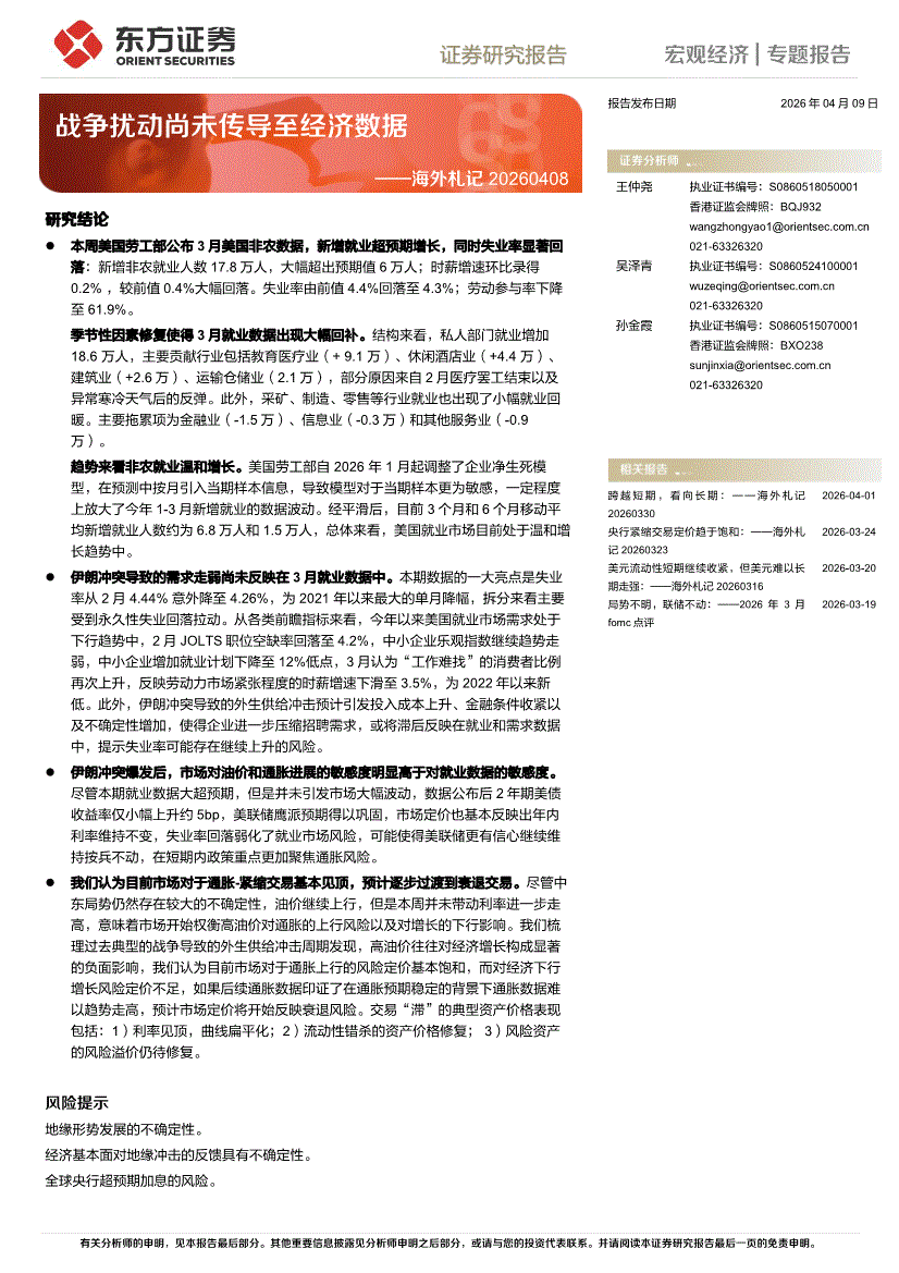 東方證券-海外札記20260408:戰(zhàn)爭(zhēng)擾動(dòng)尚未傳導(dǎo)至經(jīng)濟(jì)數(shù)據(jù)-260409