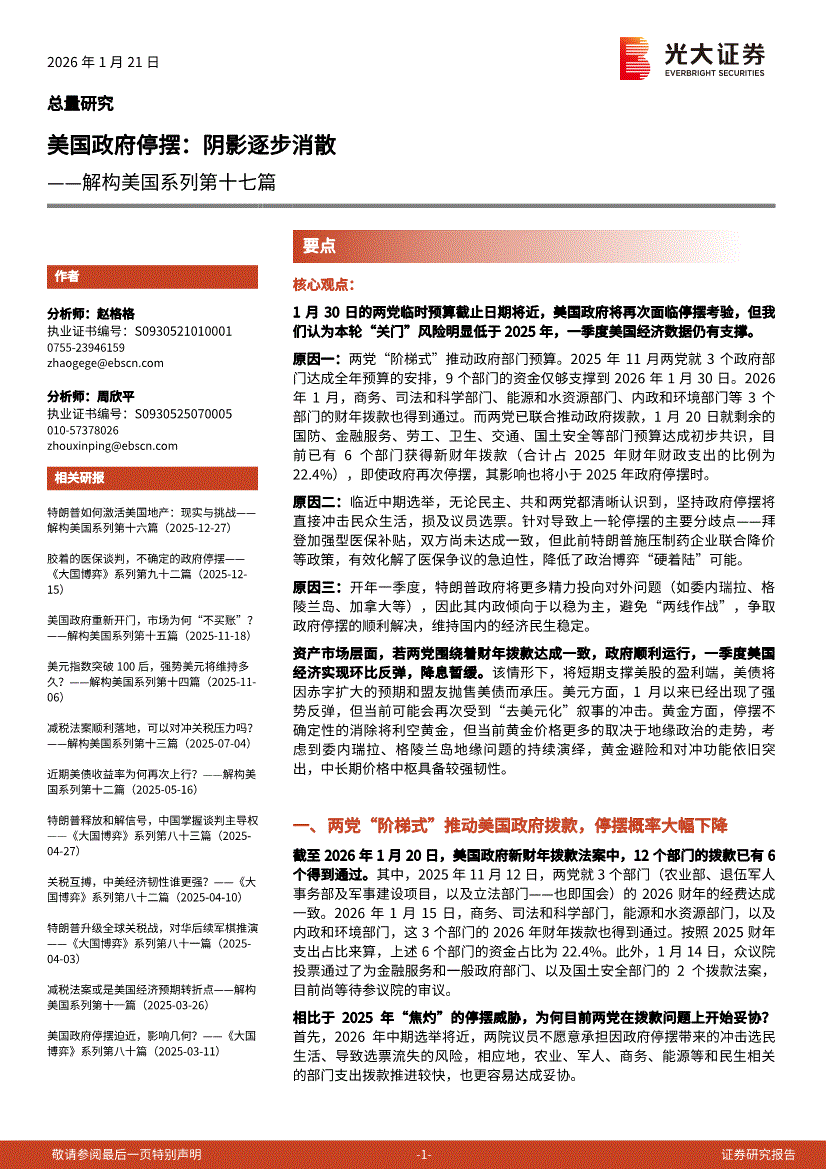 光大證券-解構(gòu)美國系列第十七篇:美國政府停擺,陰影逐步消散-260121