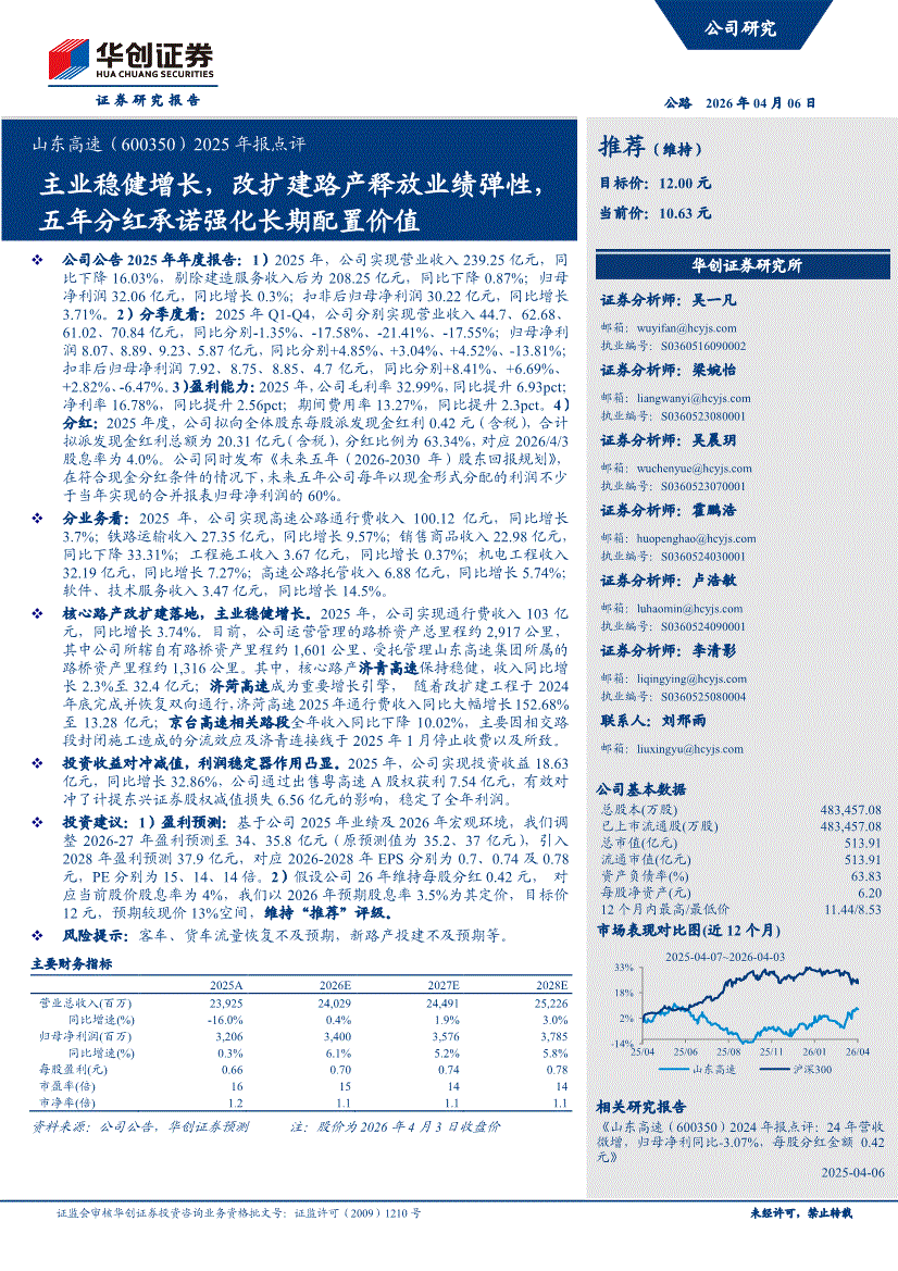 山東高速:華創(chuàng)證券-山東高速-600350-2025年報(bào)點(diǎn)評(píng):主業(yè)穩(wěn)健增長(zhǎng),改擴(kuò)建路產(chǎn)釋放業(yè)績(jī)彈性,五年分紅承諾強(qiáng)化長(zhǎng)期配置價(jià)值-260406